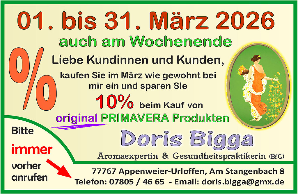 März-Aktion: 10 % auf alle Original Primavera-Artikel